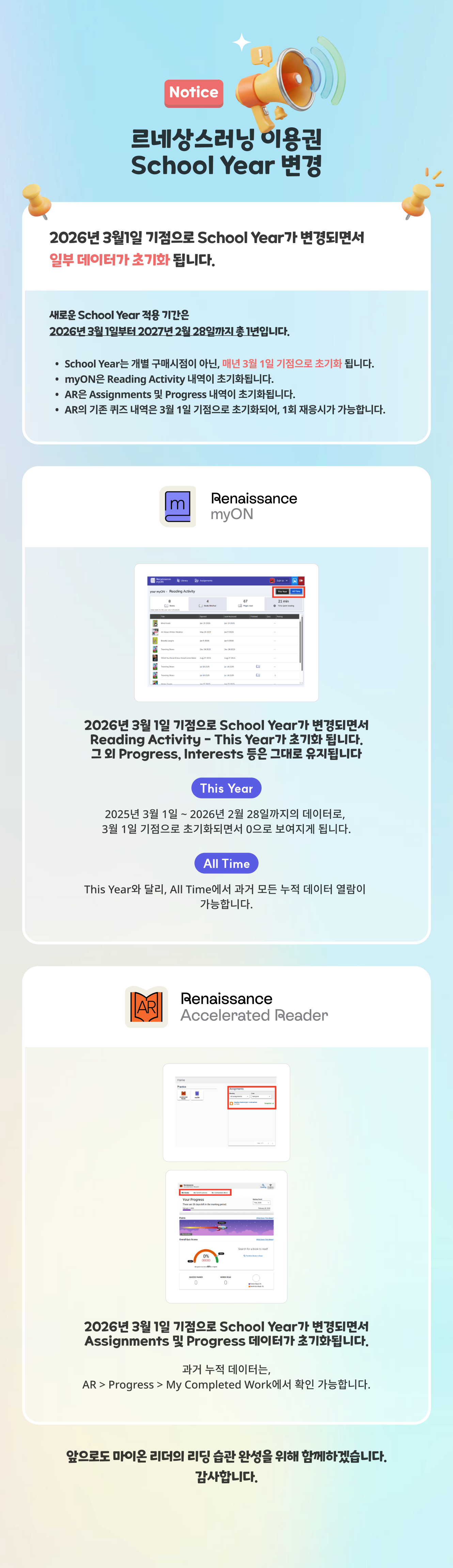26년 르네상스러닝 이용권 School Year 변경 안내